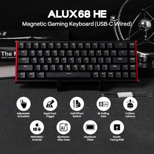 Geekzone - Aluminum Alloy Design- Black - the AJAZZ ALUX 68 HE Series Features a Robust CNC-Anodized Aluminum Alloy Casing with 180 Mesh Sandblasting, Offering a Premium Look and Feel - Serious Techies