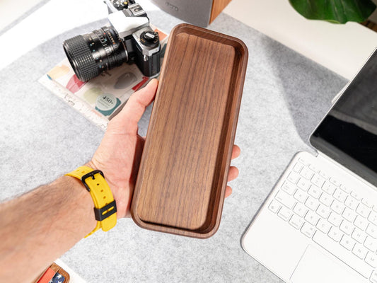 TheProOrganizer - Walnut Wood Desk Organizer Tray: Matte Finish, Minimalist Design - Serious Techies