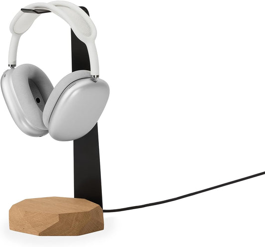 Oakywood - 2-In-1 Wooden Headphone Stand with Wireless Charging - Wood Headphone Holder – Stainless-Steel Base – Handcrafted Headphones Stand for Desk - Qi-Compatible Wireless Charging – Oak - Serious Techies