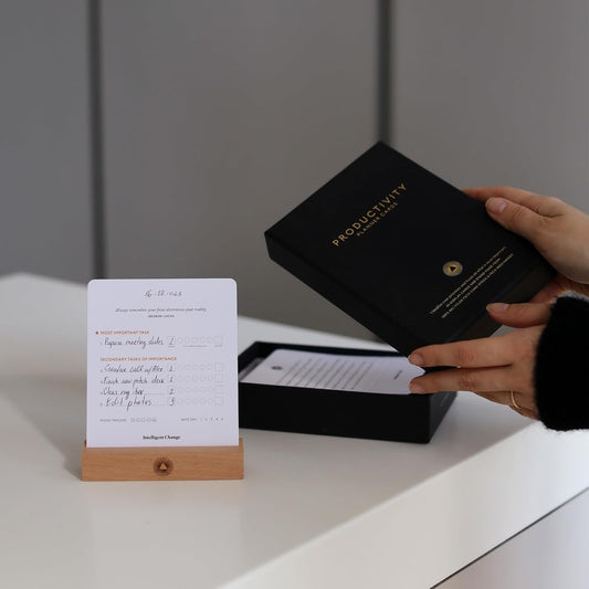 Intelligent Change - Productivity Planner Cards with Display Stand, Compact Desk-Friendly Daily Prioritization Cards, Inspirational Quotes, Dual-Purpose Design for Daily Organization and Notes - Serious Techies