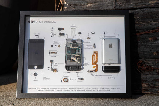 Funbox Design - Wall Art,Framed Teardown Art for Iphone 1St Gen,Disassembled Display for Iphone 1St Gen, Handmade Decor for Tech Lovers,Great Gift for Him (Rectangle) - Serious Techies
