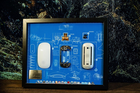 Funbox Design - Framed Teardown Wall Art for Apple Mouse Retro Tech Decor Made from Original Shell Components Desk Display or Gift for Collectors and Minimalist Fans - Serious Techies