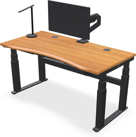 Uplift - Bamboo Curve (60 X 30 Inch) Electric Standing Desk V2-Commercial (Black) 4-Leg Adjustable Stand up Desk, Advanced Keypad, Wire Grommets, Wire Management Tray, Bamboo Rocker-X Board - Serious Techies
