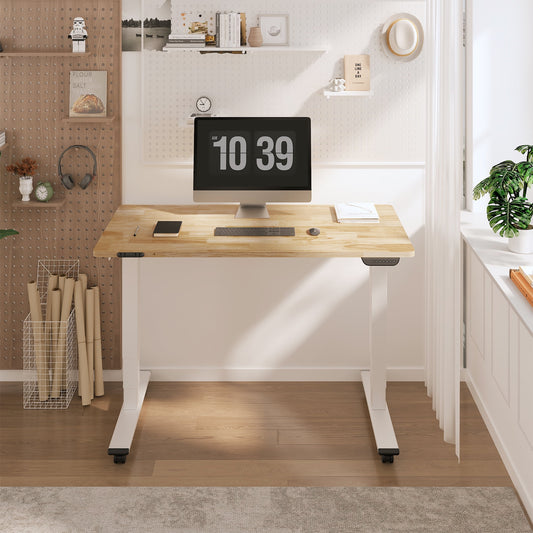 FLEXISPOT - 48"X24" Dual Motors 3-Stage Standing Desk Solid Wood Home Office Height Adjustable Desk with Wheels, Solid Rubber Wood Desktop and White Frame - Serious Techies