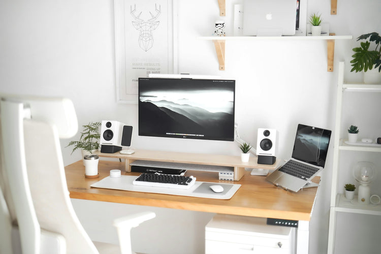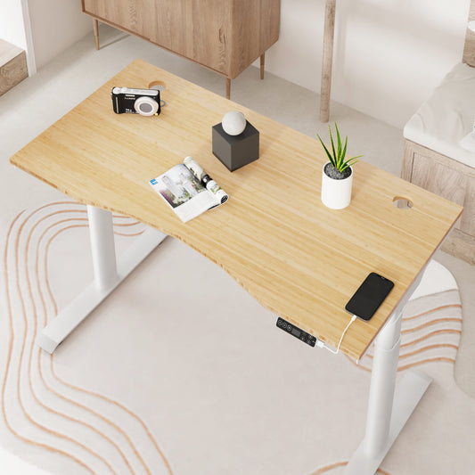 FLEXISPOT - 48"X24" Dual Motors 3-Stage Height Adjustable Standing Desk Ergonomic Home Office Sit Stand Desk with USB Port, Bamboo Curved Desktop White Oval Frame - Serious Techies