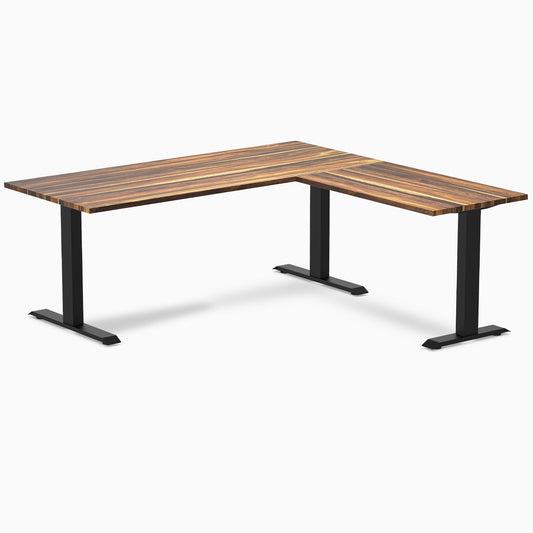 Desky - Hardwood L-Shape Sit Stand Desk - Pheasant wood / 60 X 30 X 62 X 20 Inches / Matte Black - Serious Techies