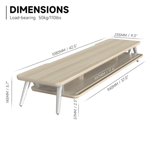 Fenge - Dual Monitor Stand, 42.5Inch Long Monitor Stands Riser for 2 Monitors - Serious Techies