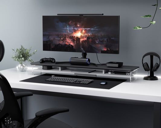 Fenge - Acrylic Monitor Stand Riser, 42.5 Inch Monitor Stands Shelf with 12 Color Blue LED Light - Serious Techies