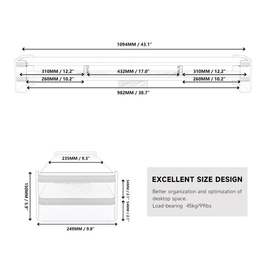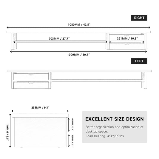 Fenge - Dual Monitor Stand, 42.5Inch Monitor Riser with Acrylic Drawer - Serious Techies