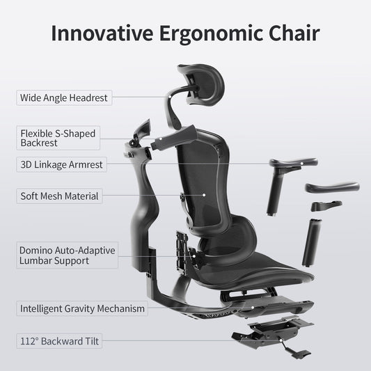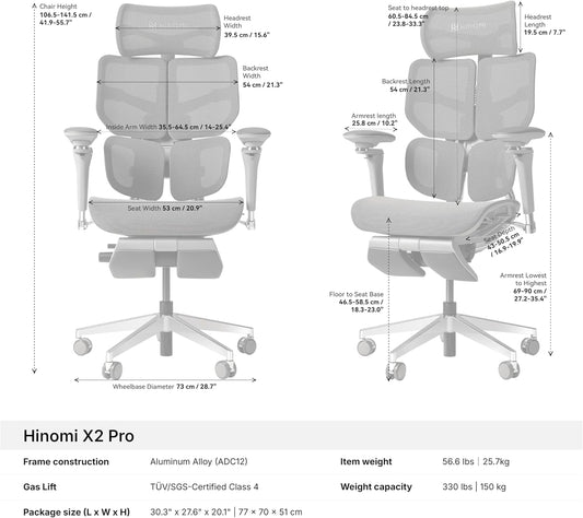 HINOMI - X2 Pro Premium Ergonomic Office Chair – Comfortable Mesh Computer Chair with Adjustable Lumbar Support, Reclining Swivel Desk Chair, Retractable Legrest & Headrest for Home Office (Black) - Serious Techies