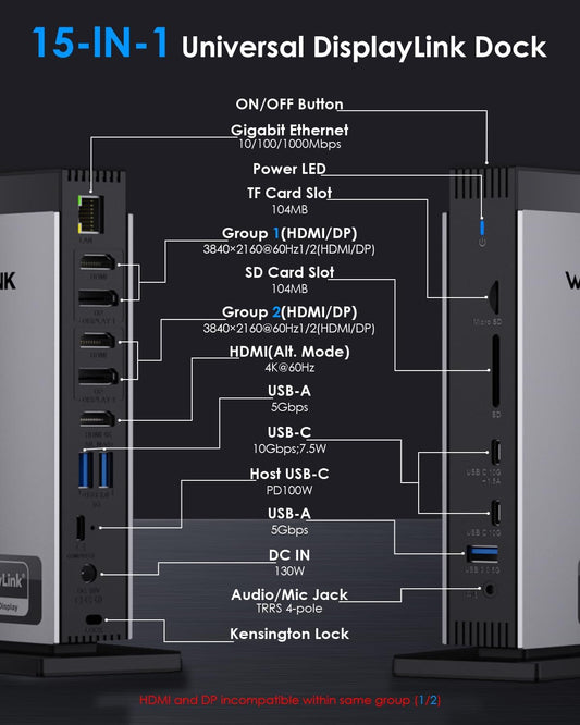 WAVLINK - Dock Station 140W Charge USB Dock with 8K Hdmi/Displayport, RJ45, 10Gbps USB, SD/TF for M1/M2/M3&Win - Serious Techies