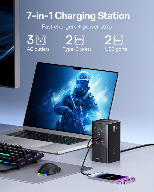 Baseus - 7-In-1 USB C Charging Station, 100W Powercombo Fast Charging Power Strip with 3AC+2U+2C USB, USB C Charging Station for Desktop Accessories, Macbook, Tablets in Office & Home - Serious Techies