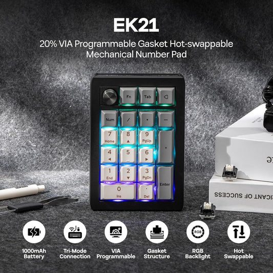 EPOMAKER - EK21 via Gasket Number Pad with 1000Mah Battery, BT 5.0/2.4Ghz/Wired Hot-Swap Numpad with Aluminum Alloy Knob, Programmable for Win/Mac/Gaming (Black Silver, Wisteria V2 Switch) - Serious Techies