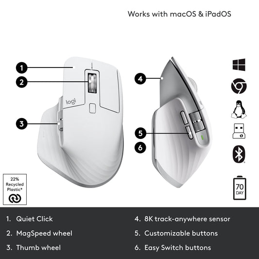 Logitech - Master Series MX Master 3S Performance Wireless Mouse, Usb-A to USB-C, Pale Gray - Serious Techies