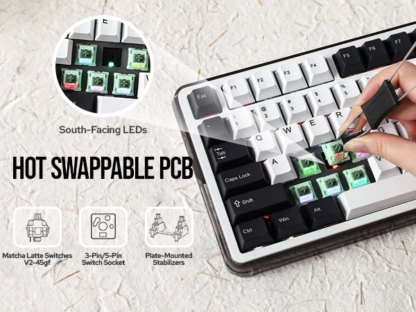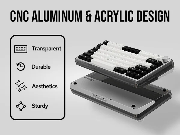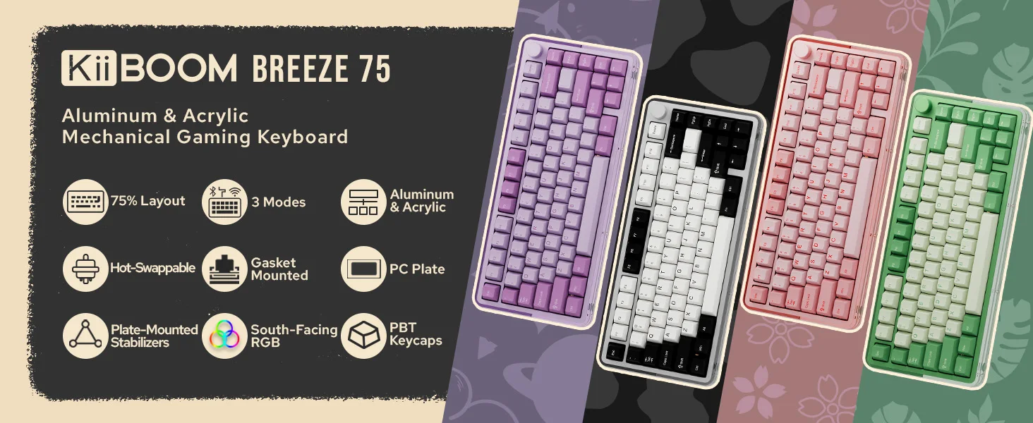 Kiiboom - Breeze 75 Aluminum & Acrylic Hot Swappable Type-C Wired/Bluetooth/2.4Ghz Wireless Mechanical Keyboard for Win/Mac - Serious Techies