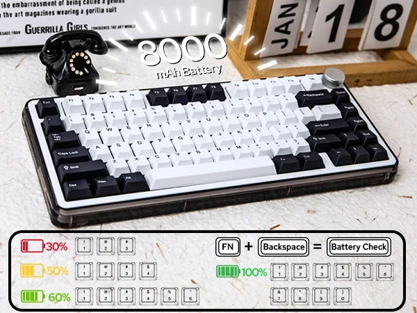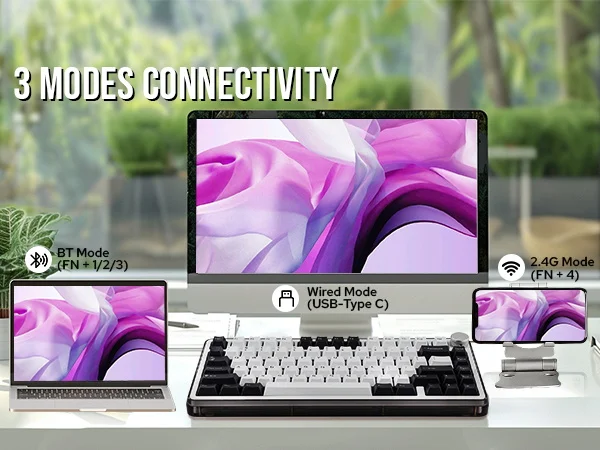 Equipped with Bluetooth 5.0, 2.4GHz wireless, and wired connection options, the Breeze 75 is powered by dual 4000mAh batteries, totaling an impressive 8000mAh capacity. This setup guarantees extended battery life and reliable connectivity in any usage scenario.