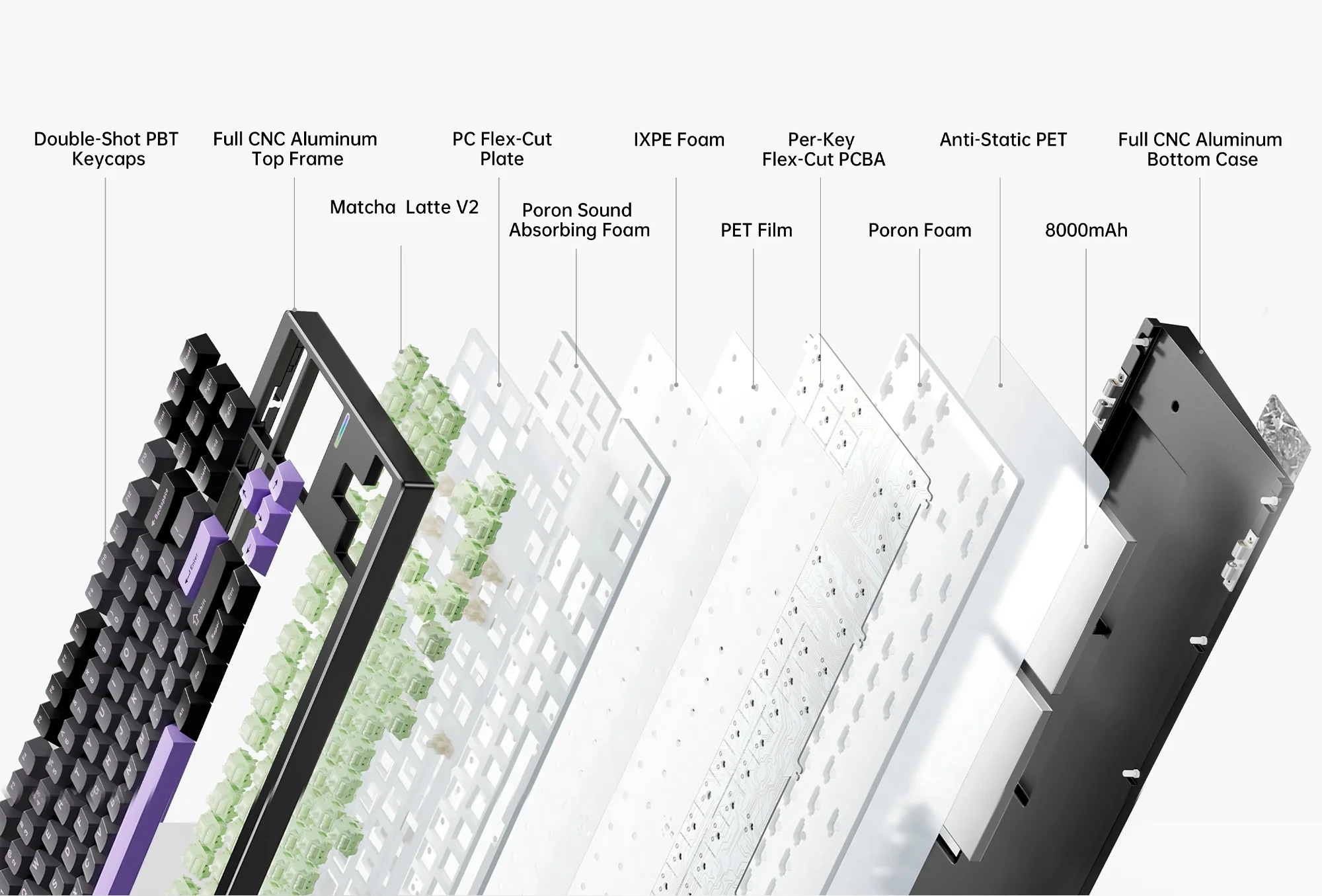 With its quick disassemble case, full CNC aluminum body, 5-layer gasket mount, hot-swappable switches, and QMK/VIA customization support, it delivers a premium tactile typing experience and unlocks endless personalization possibilities.