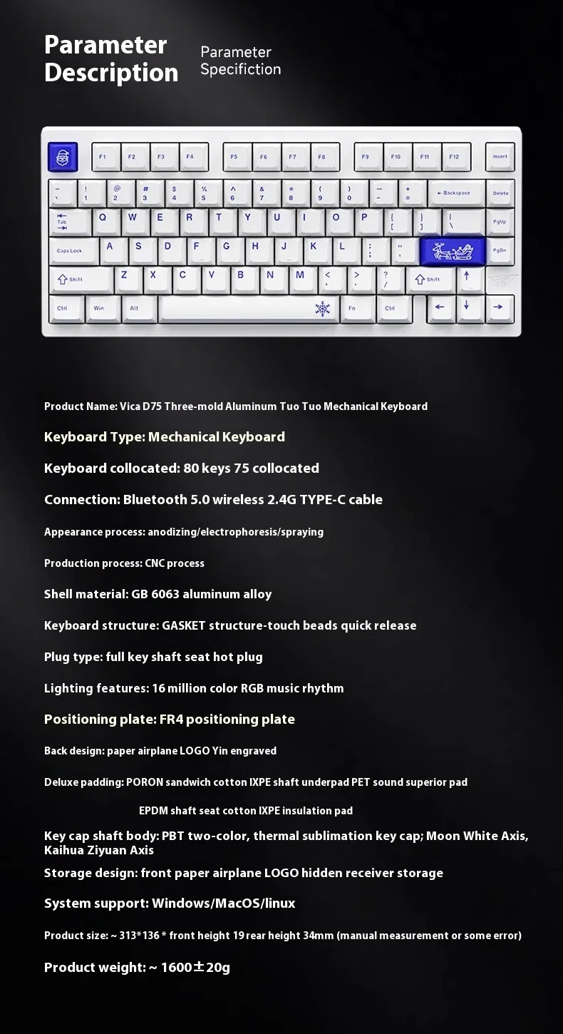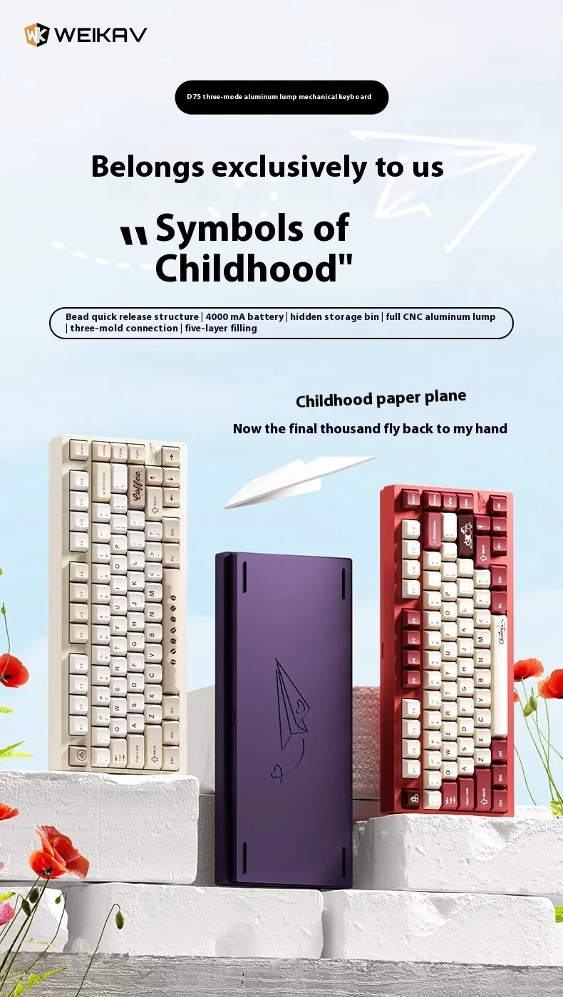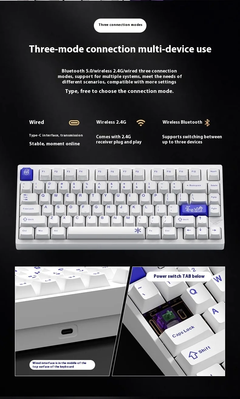 Weikav - D75 Wireless Three Mode Keyboard Kit Rgb Backlight Hot-Swap Aluminum Alloy Mechanical Keyboard Customized Support Qmk/Via - Serious Techies